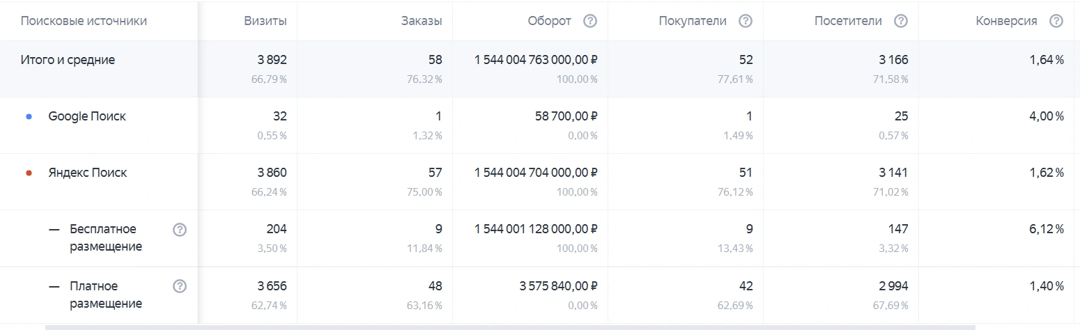 Ниже вы сможете более подробно посмотреть откуда именно пришли пользователи, которые совершили заказ. Поиск по товарам - это бесплатное размещение в Яндекс Поиске: